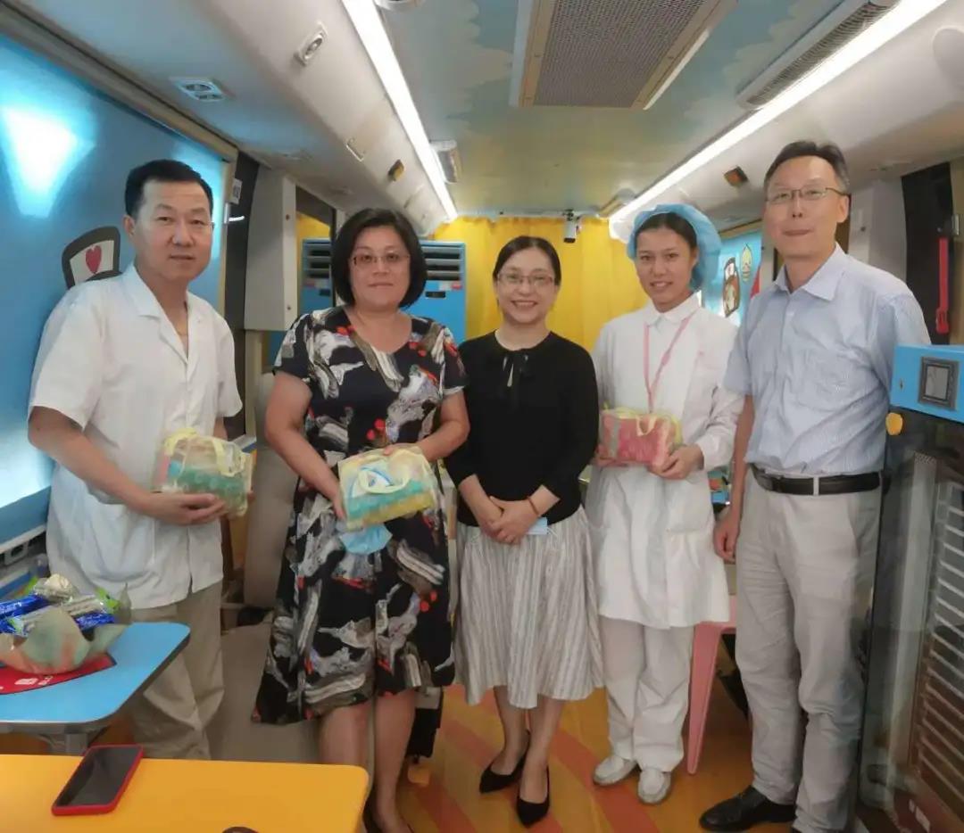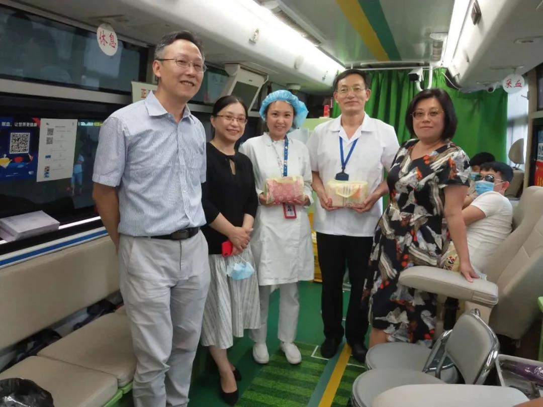 8月7日,骄阳高照,热浪袭人。徐汇区血液管理办公室俞洁主任、陈蔚副主任、孙华老师走访慰问一线工作人员和无偿献血者。