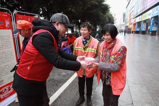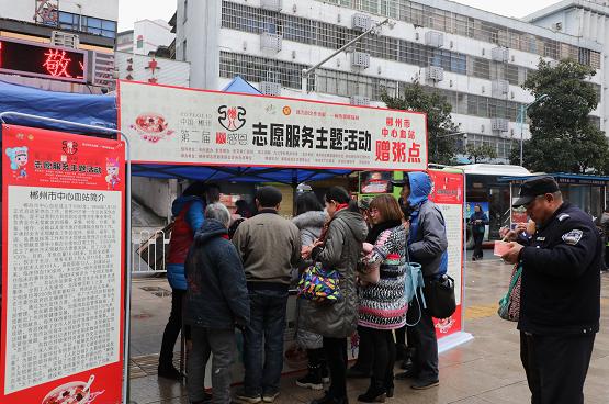 据悉,“我为创文作贡献·一碗热粥暖福城”郴州市第二届腊八感恩粥志愿服务主题活动,由郴州市创建办、郴州市文明办、郴州市文体广新局指导,郴州市志愿服务联合会主办,全市各个公益组织和机关单位志愿团队都走上街头的近千个赠粥点为市民赠粥。