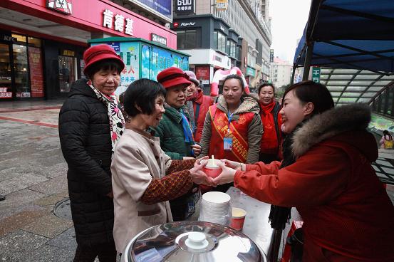 活动现场,来自该站的党员、团员志愿者们忙得不亦乐乎。大家身着统一的红色志愿者服装,热情地邀请无偿献血者和过往的市民前来品尝精心熬制的腊八粥,还特地给赠粥点附近忙碌在工作岗位上的环卫工人、交警、公安、城管等工作人员送去热气腾腾的粥品。