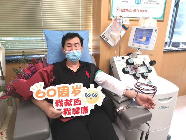 王绍川,浙江省人民医院后勤部主任,今天是60岁前的最后一次成分献血,也是他的第95次献血。他和我们回忆他人生的第一次献血,那是1988年10月3日,是武林广场献血车开始采血工作的第一天,王绍川作为第一位献血者登上了中心的献血大巴车,从此就开始了他的献血旅程。之后的“献血马拉松”里他接触到了成分献血,在其夫人的理解和支持下,足足坚持了32年。尽管医院的工作繁忙,但他只要有空就会赶来捐献成分血帮助他人,工作、家庭、献血一样也不落下。三十余年光阴荏苒,王老师从帅小伙变成了帅大叔,唯一不变的是他金子般赤诚的奉献精神。每一次的“献血之旅”已让王绍川和血液中心工作人员、志愿者都结下了深厚的友谊,今天最后一次献血,他还是那么的低调,只是在献血时和工作人员交流中,言语间多了一份不舍与留恋。