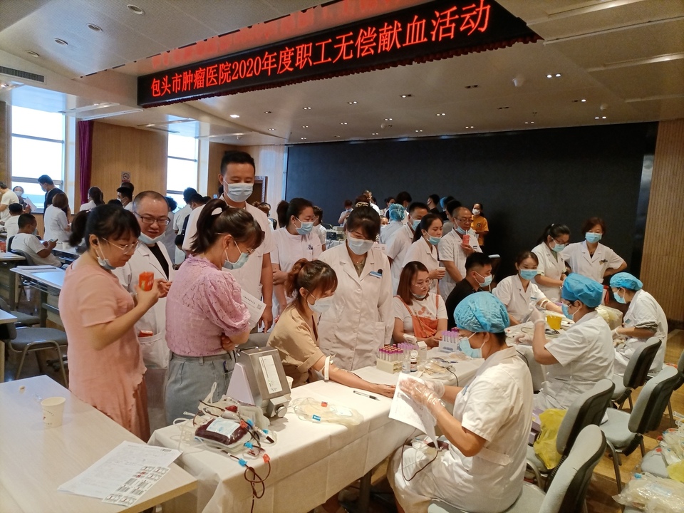 8月11日,包头市肿瘤医院举办2020年度职工无偿献血活动,医院的党员、科主任、护士长纷纷踊跃加入到无偿献血者的队伍中。