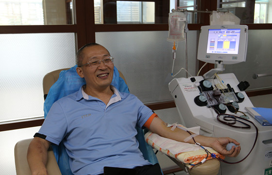 在此次的无偿献血活动中,张医生本想和输血科主任孙辉一起参加机采成分血的采集,由于医院工作太忙,俩人迟迟无法一同前来献血,看到同事们都在献爱心,热血张医生就利用休息时间率先来到血站捐献成分血。通过体检、初筛,张诒勋医生顺利坐到机采血小板的采血椅上,因为即将要实现捐献成分血的心愿,张医生整个过程都很从容放松,顺利地捐献出2个治疗量血小板。