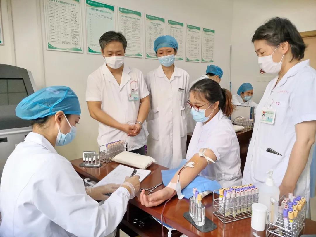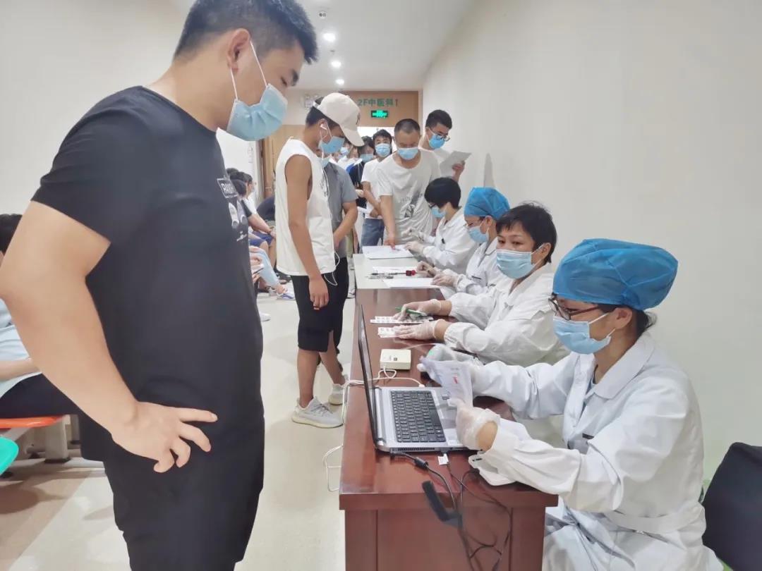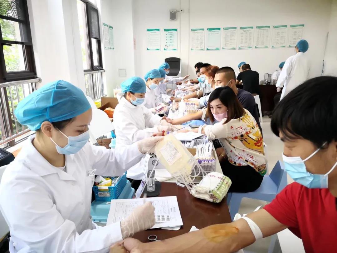 献血前的他们朴实热情,“高温的天气也阻挡不了我们献血的热情。”