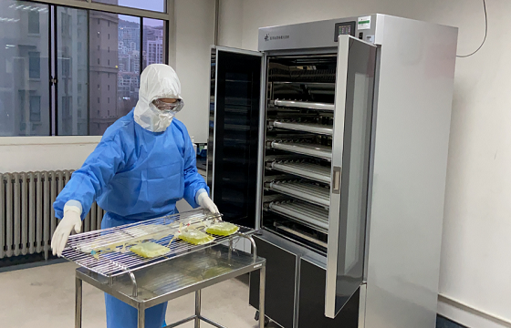 丛培芳正在进行新冠康复者血浆病毒灭活工作