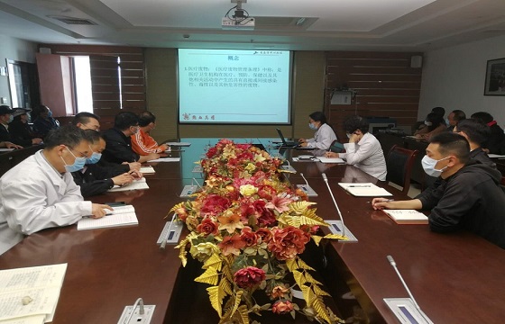 孙书芳正在为全站物业司机保洁总务人员进行院感培训