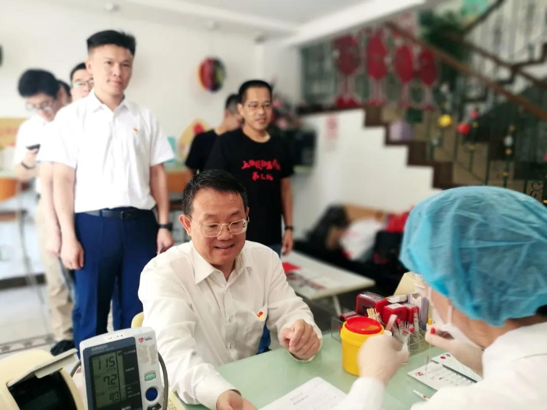 前来参加无偿献血的还有上海市公共卫生临床中心党委书记卢洪洲和他的团队成员。上海市公共卫生临床中心是新冠疫情期间上海收治患者的主战场,作为上海疫情防控专家组成员,卢洪洲还是一名坚持参加无偿献血达20多年的固定无偿献血者,每年都会定期捐献血液400ml,至今已累计献血5400ml。