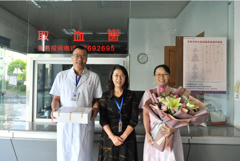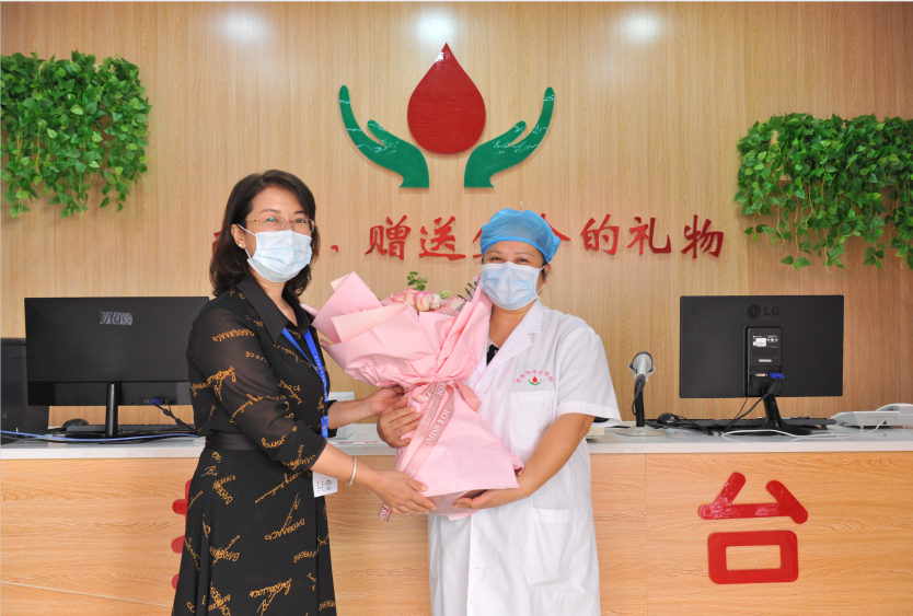 梁朦尹同志分别去到供血科及献血科走访慰问,与每位坚守岗位的在岗医师交谈,仔细了解他们的工作生活情况,并向他们送上鲜花及蛋糕,对他们勇于站在抗疫前线、长期坚守一线岗位、为百色市采供血事业做出的贡献表示感谢。