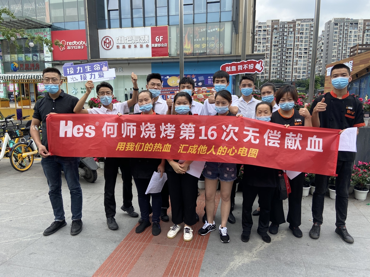2020年8月19日,何师烧烤接过了2020年民营企业无偿献血公益行动的爱心接力棒,热血开跑!