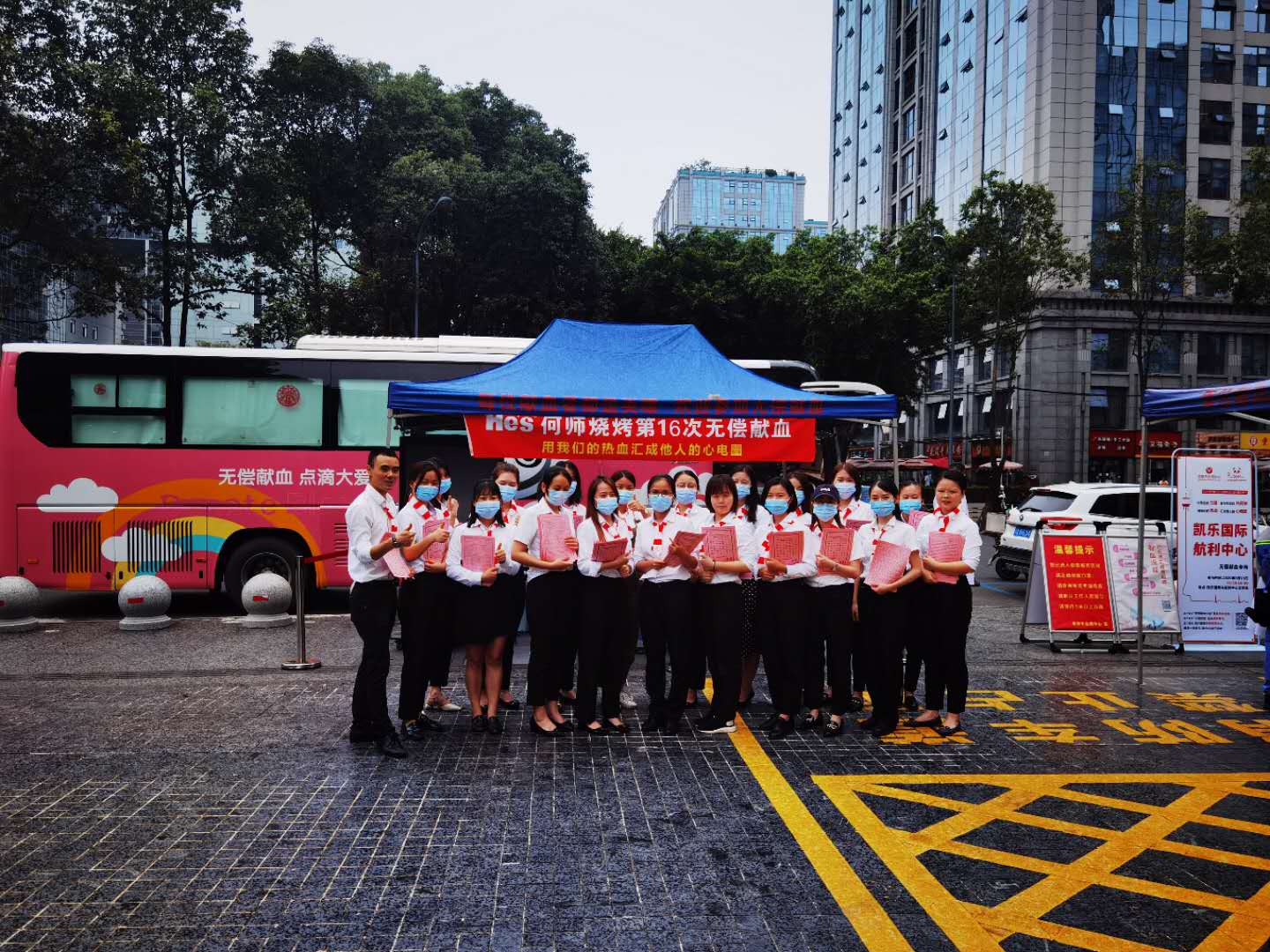 当天,她发起的何师烧烤第16次团体献血活动分别在成都市血液中心、莱蒙都会爱心献血屋和何师烧烤凯乐国际店开展。这次活动共有123名“火娃”、周边商家员工和路人志愿者汇聚爱心血液35900毫升、单采血小板12.5个治疗量。