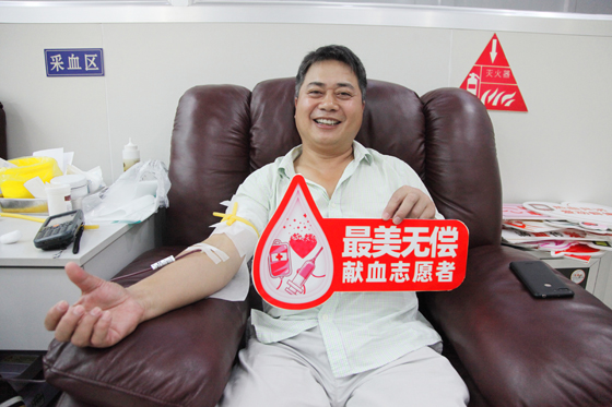 岳先生第一次参加无偿献血,对于能够帮助他人觉得非常开心