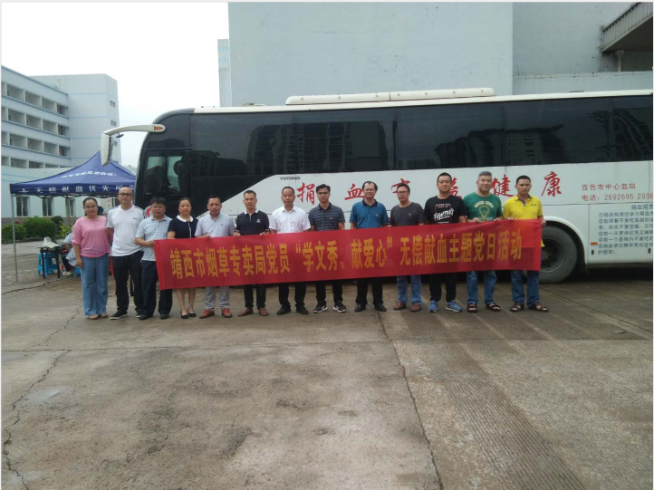 8月19日,靖西市烟草专卖局(营销部)组织全体党员干部职工开展“学文秀,献爱心”无偿献血主题党日活动。