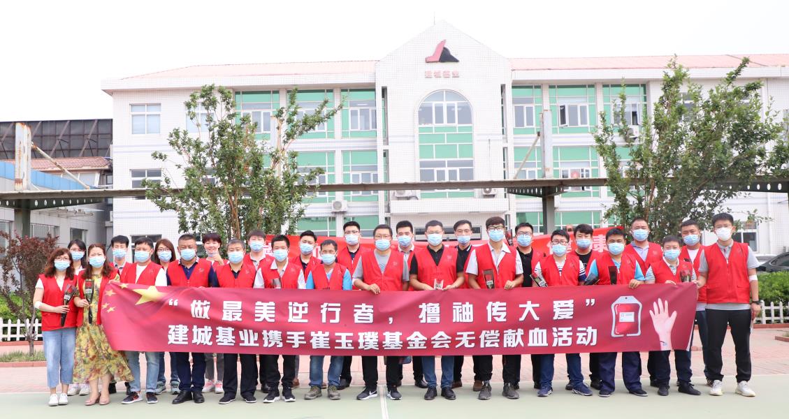 天津建城基业集团是东丽区一家以地下工程和建材生产为主体的多领域大型民营企业集团,当得知疫情防控期间我市临床用血的紧张状况后,集团总经理、崔玉璞慈善基金会副理事长崔凤祥,仅用一个上午就建立了一支拥有58名公司员工的无偿献血志愿者队伍,并在“6·14”世界献血者日前夕开展了无偿献血活动,最终34名员工成功献血11800毫升。