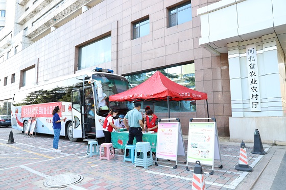 8月27日上午,河北省农业农村厅组织开展无偿献血活动,广大党员、干部职工撸起袖子,捐献热血,用爱心为生命加油。为确保活动有序开展,省农业农村厅机关党委专门下发通知,要求各部门积极组织配合,分批、分流开展此次活动。