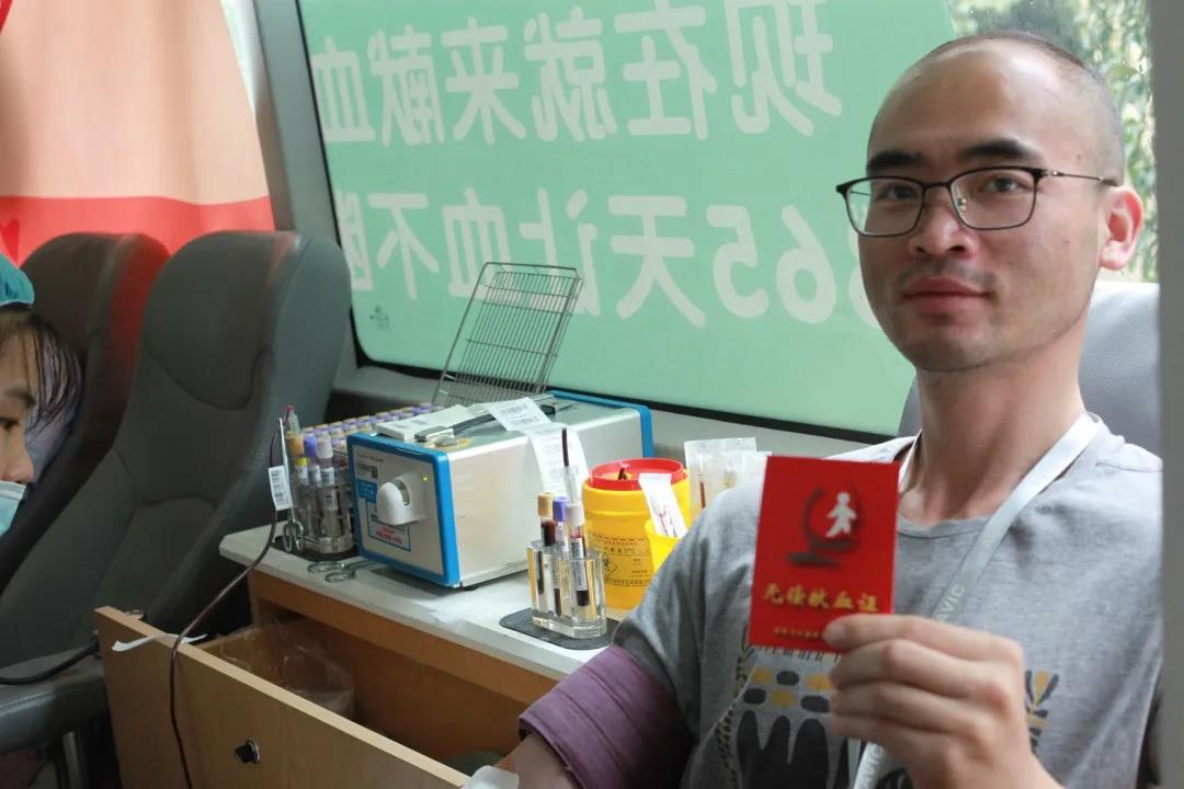 第一个躺上献血椅的李润青有过3次无偿献血经历,淡定自如的他再次献出热血,献血时他还不忘给第1次献血的同事鼓劲加油。第5次无偿献血的乔希从护士手中接过无偿献血证时看了又看,笑着说:“这是第5本无偿献血证,很有意义,得好好保存。”