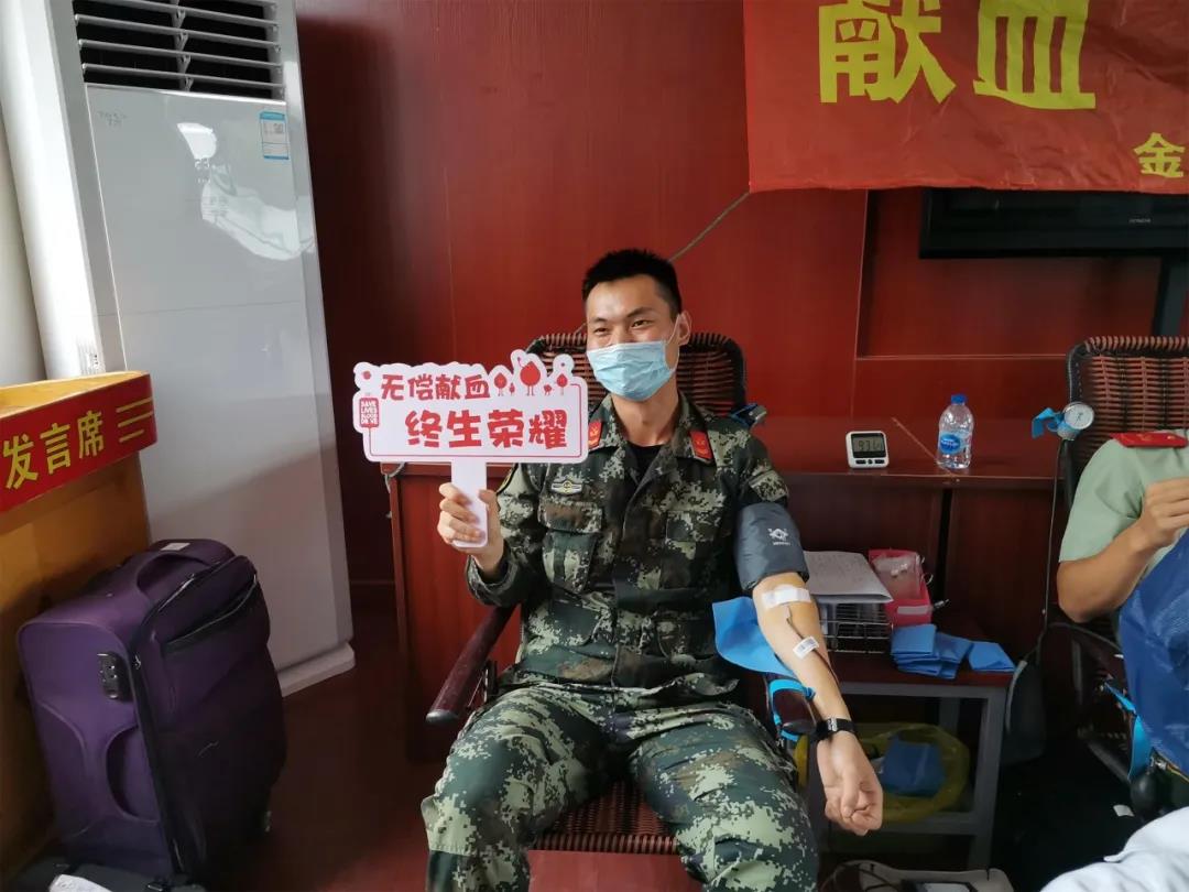 第一个伸出臂膀献血的小伙叫单春贇,这是他第4次无偿献血了,献血在他看来只是微不足道的一件小事,身为军人更应该走在前列。