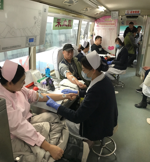 由于市中心医院人员多,工作性质相对特殊,为了更好地为忙碌在救死扶伤工作一线的“白衣天使们”提供更好的诊疗服务,市中心血站安排了三辆流动献血采血车停放在医院第三住院部楼前。许多医护人员都是在各自的工作岗位抽出时间参加献血公益活动。第六党总支书记卞彩玲是全国无偿献血奉献奖获奖者,已经累计献血五千余毫升,本次带头献血;内分泌诊疗部主任兼内分泌二科主任杨杰刚带领医生们查完房,也专程赶来献血;产六科刚刚下夜班准备回家休息的吴秀芳,也是不顾同事劝阻,坚持上车献血;儿内科的褚忠霞、张雪梅两位护士长也是急匆匆的献完血,顾不上喝一口水,紧接着又投入到忙碌的医疗服务工作中。还有许多无法一一列举的医护人员,用他们的爱心奉献,充分展示了市中心医院医护人员的天使风采。