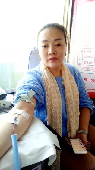 “熊猫女侠”辛风荣第六次献血救人(杨双双 摄影)