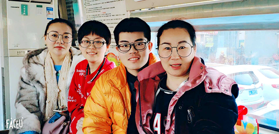 辛风荣(左一)带着家人一起献血救人(杨双双 摄影)