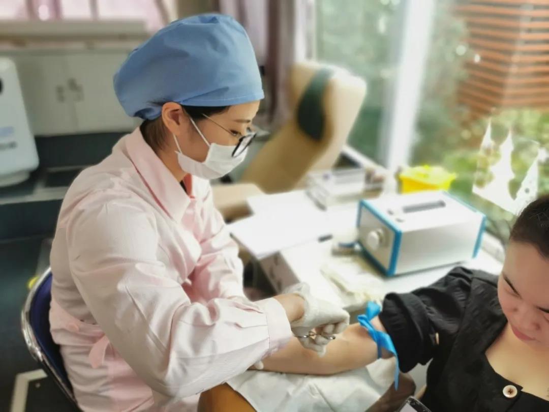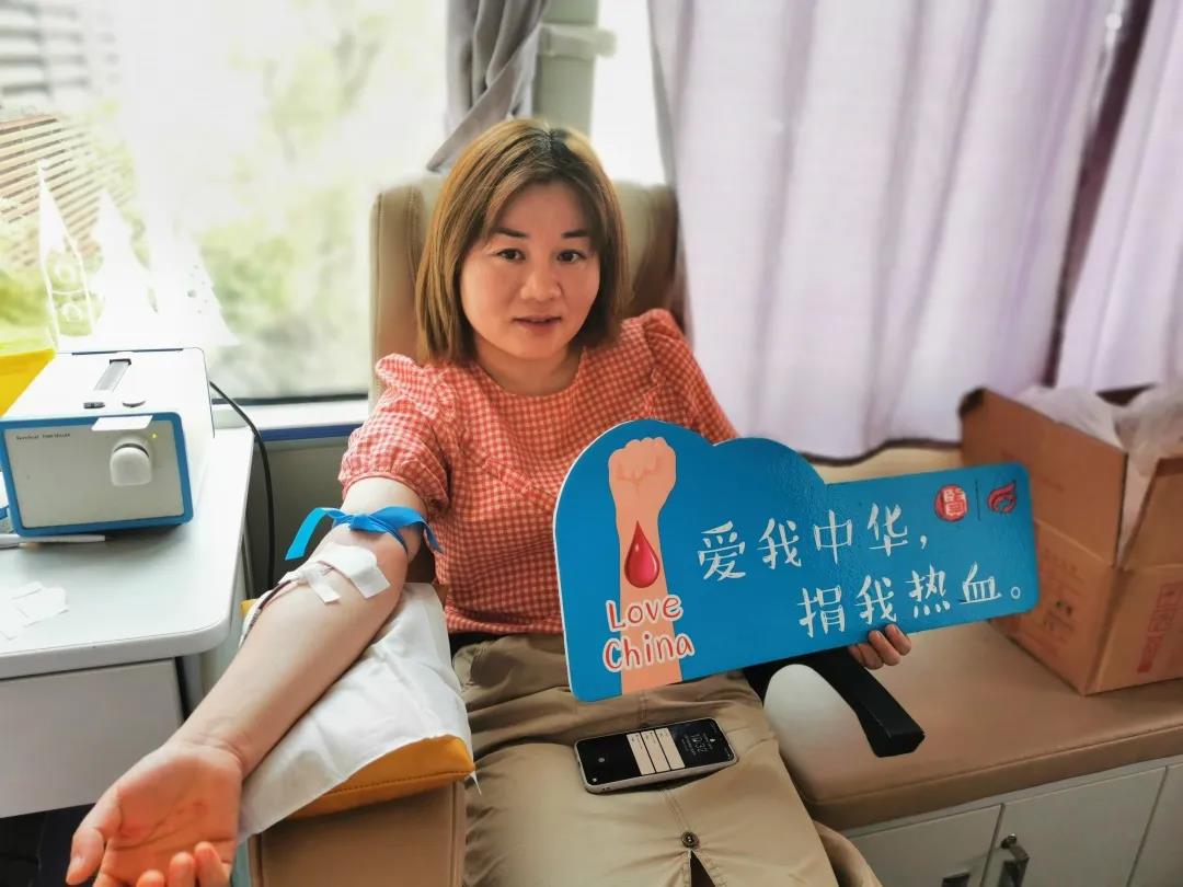 古华医院感染科护士长张燕,假期来到奉贤区爱心献血车,献热血为祖国庆生。