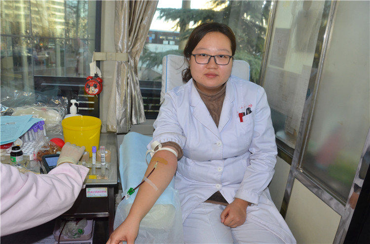 填表、体检、献血……当日上午9时,献血现场各项工作有条不紊。“我发现你们很多人的血液比较粘稠,肯定是平日里饮水较少。”献血活动现场,省血液中心采血工作人员对前来献血的平安医院输血科医生邢江涛说道。邢江涛笑着表示赞同:“咱们也算同行,都是工作忙起来就忘了喝水,不过咱们血液粘稠了里面都是‘干货’,都是有用的红细胞。”从事血液工作的邢江涛今年是第7次参加无偿献血,对血液工作感触很深,“每天很多血液病人、手术病人都需要输血,从事这个工作我一定要身体力行,大力支持。”