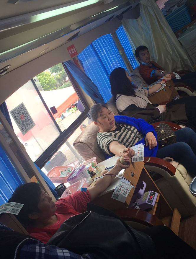 ►采血车上献血的志愿者