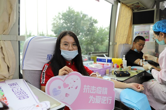 在献血车上准备献血的王旭星,开朗乐观的笑着说:“第一次献血是在保定,那时候还在上大学,家里的献血证可是我最珍贵的宝贝,每次看到它都有一种很光荣的感觉。”说起献血她还是一脸的激动和开心的样子,今天来献血的时候还招呼着身边的同事说:“走,咱们一起去献血吧!”