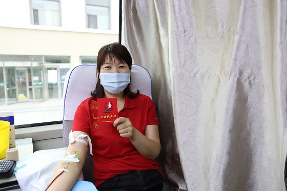 最后走上献血车的是党委办公室的李建华,也是此次活动的组织者。从前期发起献血号召,到活动策划组织,还有用心的拍摄视频,每个环节无不精心的做了大量的工作。谈笑间知道她曾经多次想献血,可是每次都因为血色素不合格,没能献成,今天终于如愿了。据李建华介绍,此次活动在发起号召后一天的时间内就有50多人报名响应,有以往已经献血多次的老献血者,也有第一次参与献血的新人,大家都一样有爱心。无偿献血的大爱奉献精神已经深深的扎在河北高速人的心中,这份爱在他们身边蜿蜒流淌,他们也将这份大爱继续传承,影响更多人。他们将爱洒满燕赵大地这片热土上,绽放出艳丽鲜红的花朵。