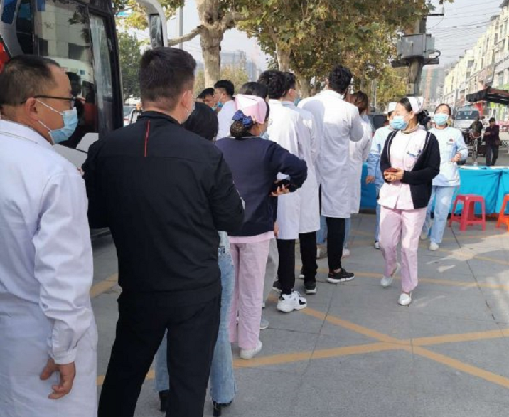 10月21日,菏泽市中心血站联合曹县磐石医院开展无偿献血活动,100余人积极参加无偿献血。