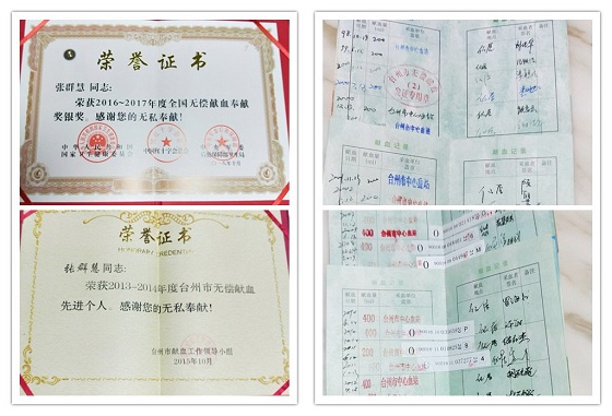 为了给广大献血者提供更好的服务并宣传无偿献血,2010年8月,台州市无偿献血志愿服务队成立,张群慧正式成为这个队伍的第一批成员。截止目前,她总共参与志愿服务279次,累计服务总时间已经达到1078小时,荣获“2014-2015浙江省无偿献血志愿服务奖”、“2016-2017全国无偿献血志愿服务五星级志愿者”等荣誉称号。