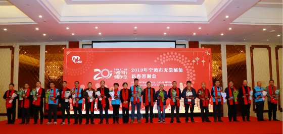 1月23日下午,宁波市累计献血8000毫升以上献血者、百次以上献血者、星级志愿者、无偿献血爱心单位、高校献血先进集体代表等数百次爱心人士欢聚一堂,举行“无偿献血二十载——与爱同行感恩有您”宁波市无偿献血新春联谊答谢会。