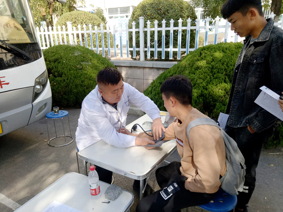 武文斌在为献血者健康查体