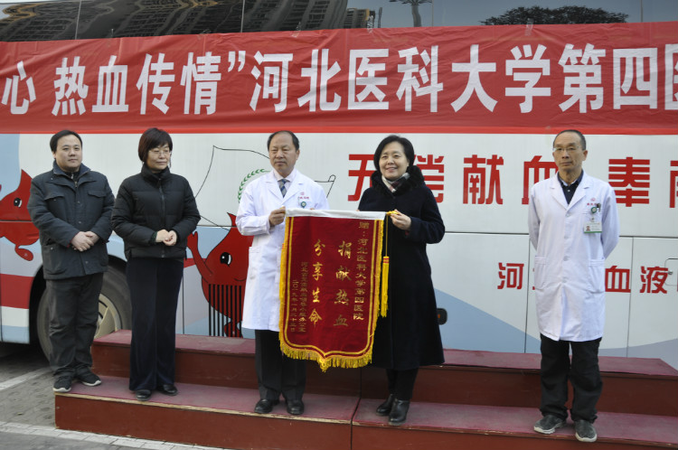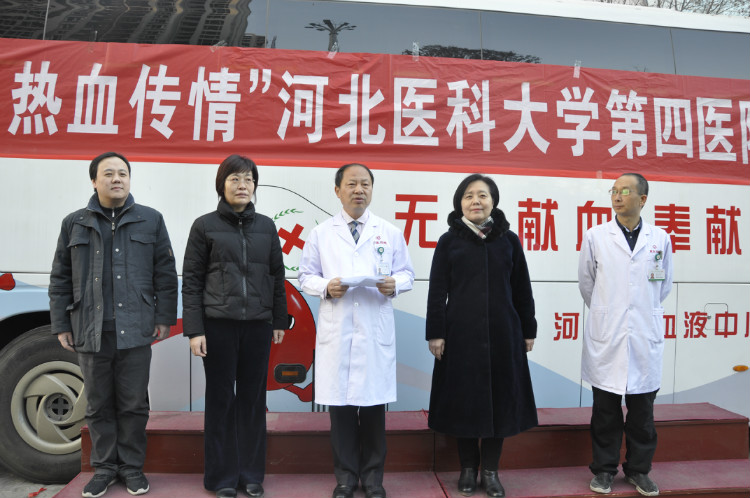 1月23日,河北医科大学第四医院组织开展无偿献血活动,图为院长单保恩作倡议发言 。