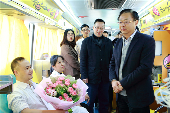 市人民医院康复医学科主治医师潘迅作为献血者代表发言,他以多年来的献血经历鼓励市民积极参与无偿献血。市人民医院院长陈卫平在致辞中表示,医务人员带头献血既体现医者仁心、博爱奉献的精神,又有利于消除广大群众对献血的疑虑和误解,理应率先行动、勇当先锋,为患者献出一份爱心。市卫计委主任谢寿坤在讲话中指出,无偿献血活动是以爱心投身公益、服务群众、回馈社会的良好平台,全体医务人员要做无偿献血的宣传者、践行者,让“适量献血有益健康”、“我为人人,人人为我”的社会公益意识深入人心。启动仪式后,谢寿坤主任等领导走上献血车慰问献血者。