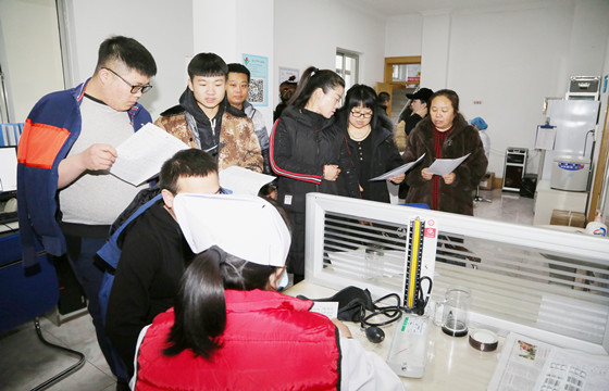在献血前,血站工作人员为每一位献血者做检查,看是否合适献血。