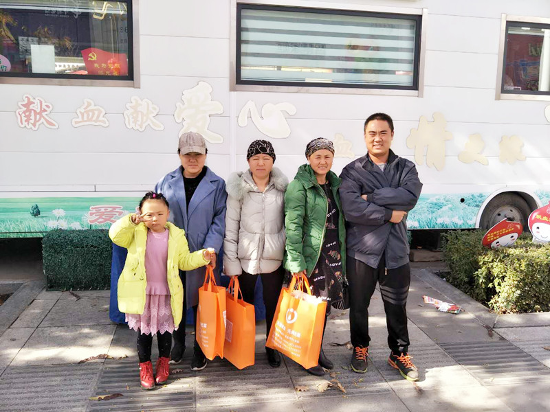 献血屋外偶尔走过几个路人,抬头看看前面的路,又埋头继续前行。献血屋里人影绰绰、爱意浓浓,气氛格外的好,原来是马永杰一家组团来献血了。