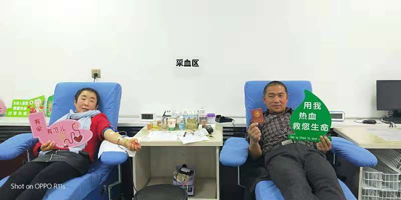 正在王天山夫妇俩捐献的过程中献血屋里又走进来了一对夫妇,他们是王玉福和李秀萍。王玉福是血站的老献血者了,年过55岁的他已经献血2次,按照《献血者健康检查要求》的规定“国家提倡献血年龄为18周岁--55周岁;既往无献血反应、符合健康检查要求的多次献血者主动要求再次献血的,年龄可延长至60周岁。”今天他带着他的爱人李秀萍来到了献血屋,李秀萍说:“我在老公的动员下一起来献血的,以前我也不敢献,看见他每次献完后身体都没有不舒服,反而给我说头脑比以前轻松了,我也跟着来的。今天亲身体会到献血无损健康,还能帮助和挽救他人,这么好的事情我们以后一定会定期来的。”