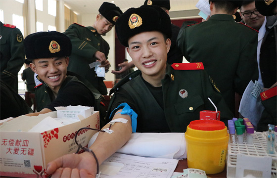 随着春节临近,我市持续低温,街头献血人数减少,为确保春节期间全市临床用血需,武警机动三支队数百官兵挽起衣袖,积极参与无偿献血,用爱心温暖生命。据了解,活动当天共有570余名武警官兵参加无偿献血,累计献血192600毫升,其中有刚入伍几个多月的新兵和服役多年的干部和老兵,他们都希望通过献血活动,为第二故乡和驻地群众贡献一份力量。