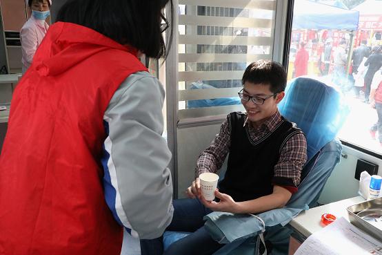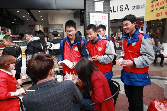 “阿姨,您好,可以了解一下无偿献血吗?”“叔叔,感谢您的爱心,请您喝杯水。”培训结束后,同学们身着统一的红色小马甲,或走上街头进行无偿献血宣传,或进行无偿献血招募,或为献血者提供献血服务。
