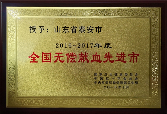 泰安市连续十二届荣获全国无偿献血先进城市至高殊荣(马克 摄影)