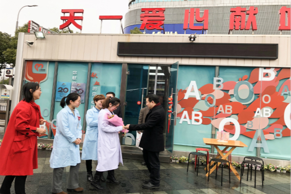 王仁元副秘书长来到天一爱心献血屋,向春节里特地参加献血的爱心人士表示感谢,并向献血者和血站职工赠送了鲜花。最后,王仁元副秘书长在天一爱心献血屋参加了无偿献血,这是他连续第十一年春节第一天参加献血。