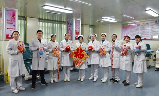 节日期间坚守岗位的供血科职工(马克 摄影)