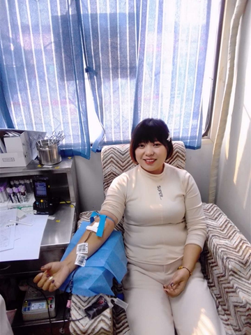刘妮是B型血,每次献血都选择献血400毫升。在咸阳市人民路大唐献血屋,这儿离单位只有几步之遥,献完血之后的刘妮脸上露出幸福的微笑。