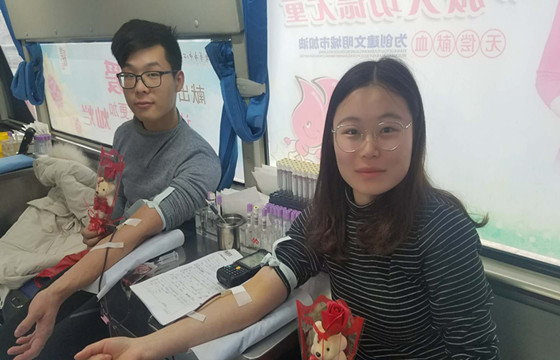 虽然天气不好,但太白楼前的献血车上,大量爱心市民,包括很多情侣、夫妻双双前来献血。年轻人李忠增与陈涵看到献血车,他们二人心照不宣走了进来,一起奉献爱心,红红的献血证与可爱的玫瑰小熊礼品见证了他们的爱心。王贵芹与盛振省夫妻去医院查体,沿途碰到献血车也伸出了手臂。盛先生在俄罗斯工作,每年回来都要为家乡献一次血,至今,他的献血量已达2800毫升了。还有从鱼台县张黄镇来的郭金安与阚淑英夫妇也来到献血车上一起奉献热血,还高兴地拍照,发朋友圈,让亲朋好友分享他们的快乐。