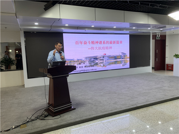 鲁翔在报告中指出,在一百年的非凡奋斗历程中,一代又一代中国共产党人,顽强拼搏、不懈奋斗,涌现了一大批视死如归的革命烈士,一大批顽强奋斗的英雄人物,一大批忘我奉献的先进模范,形成了井冈山精神、长征精神……抗疫精神等伟大精神,构筑起来中国共产党人的精神谱系。鲁翔在报告中回顾了支援湖北黄石抗疫一线的所见所闻,介绍了新冠肺炎疫情防控重点措施与前线抗疫的感人故事,分享了抗疫工作心得,结合自身的工作经历诠释了信仰是精神之“钙”、力量之源,是对奋斗目标的坚定与执着,是对党和人民事业的忠诚与担当。