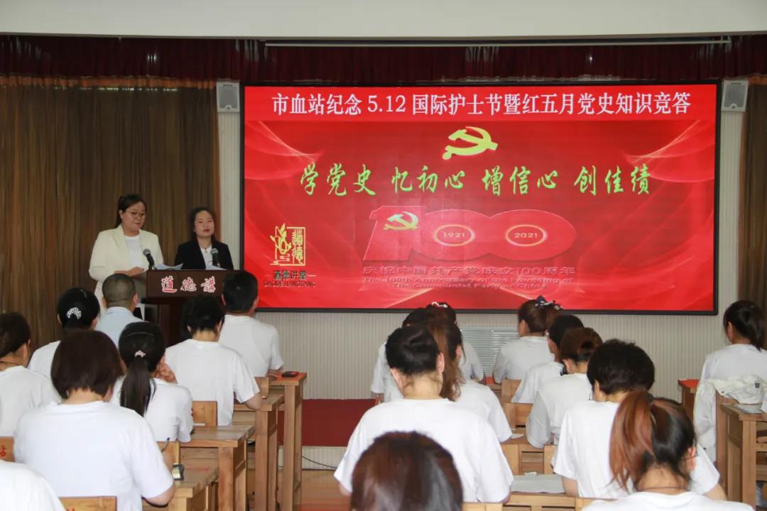 5月13日,为丰富党史学习教育,发扬南丁格尔精神,展现“白衣天使”风采,唱响主旋律、弘扬正能量,激励全体工作人员爱岗敬业,奋发有为,市中心血站结合正在开展的党史学习教育工作,举办了一场“纪念5.12国际护士节、红五月党史知识有奖竞答”主题道德讲堂活动。