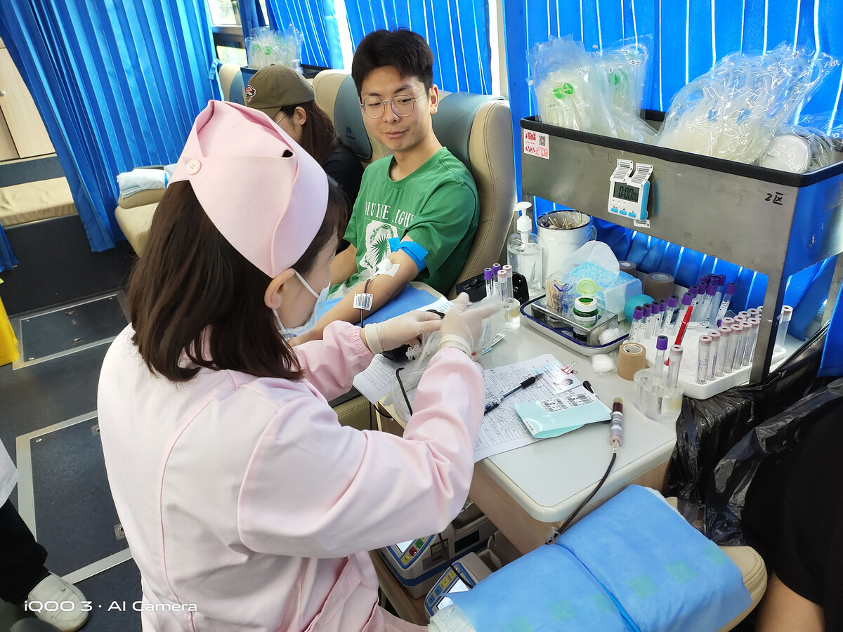 大家伸出胳膊,挽起袖子,当带着体温的血液从同学们的体内流出,一股股殷红的健康血液,顺着导管流进血袋,汇聚成一份份爱心,为更多人点燃生命的希望,充分展示了当代大学生们关爱他人、关爱社会、乐于奉献的社会责任感和优良传统美德。