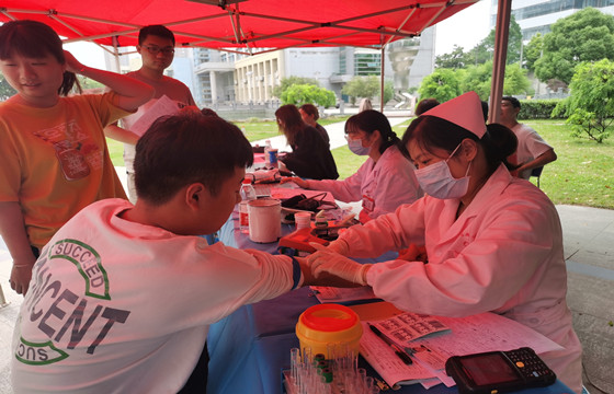 “献血是我们的责任,也是一项公益事业。作为青年大学生应当踊跃参与。”项鸿同学表示。有很多上下学的同学们看到献血车后,主动报名加入此次献血活动。他们中有多次献血的“老面孔”,也有初次献血“新同学”,不同年级的同学们纷纷挽起臂膀,献出自己的爱心。