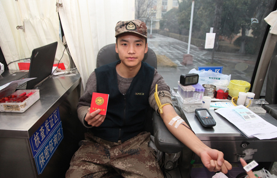 蚌埠汽车士官学校子弟兵踊跃献血庆新年