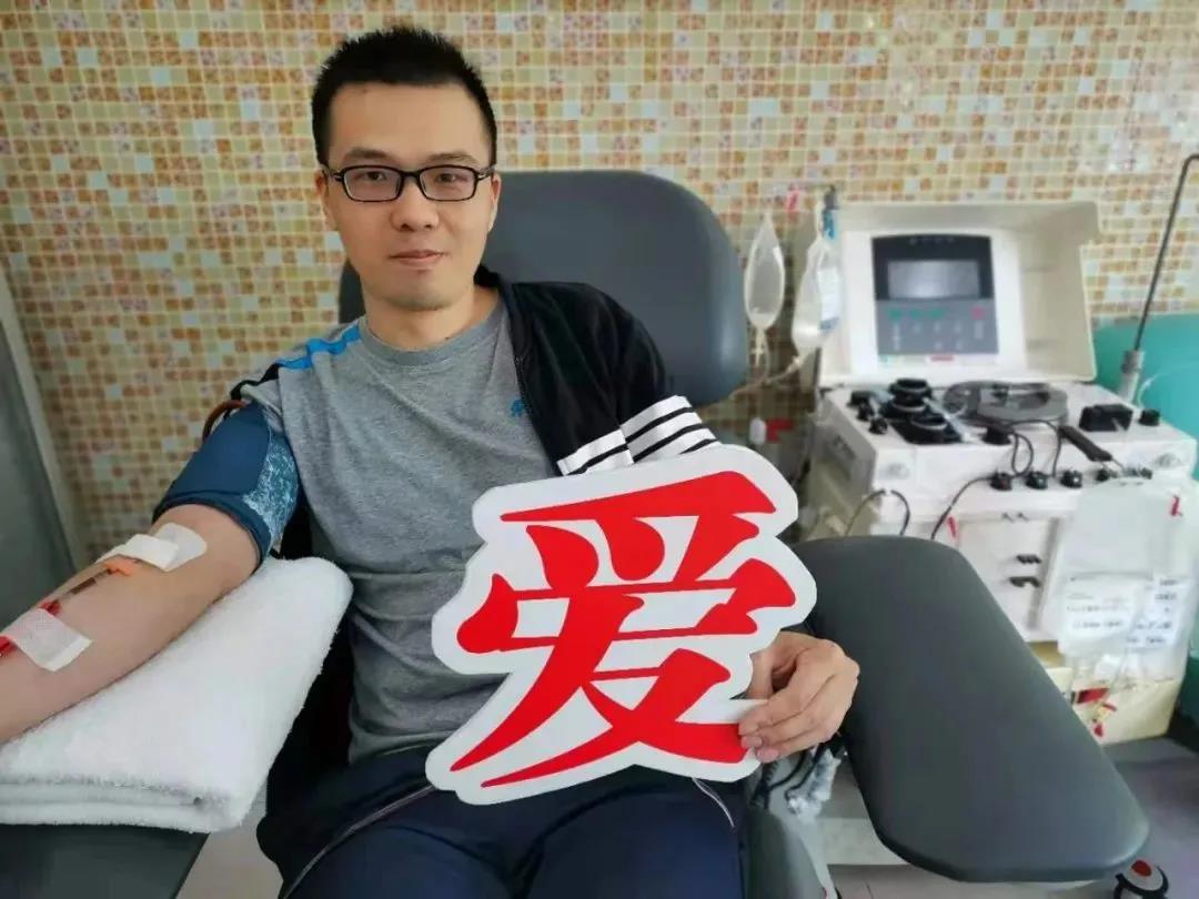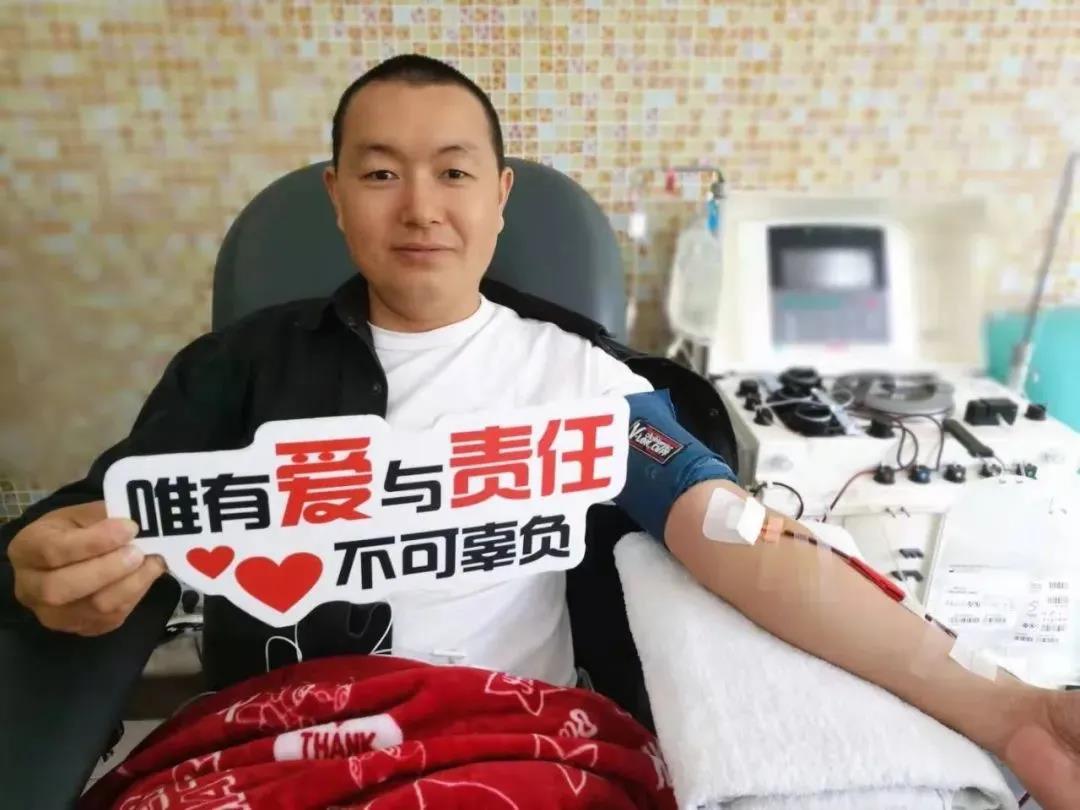 宋飞是第54次参加无偿献血,至今他已捐献全血1000ml、单采血小板100人份。