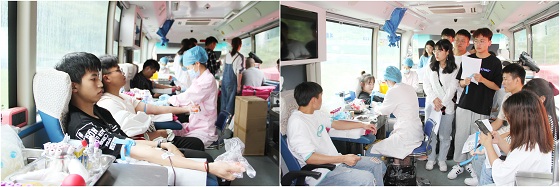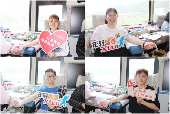 下午13点,献血现场逐渐排起了队伍,等候献血的学生们撑着一把把五颜六色的雨伞,犹如一簇簇移动的花团,花团下面是青春洋溢的笑脸。为了能成功献血,很多同学提早一天做足了功课,了解到献血的注意事项,前一晚早早入睡;早上清淡饮食等等,大家都希望能成功献血。献血车内,血站工作人员很耐心地回答同学们的不懂的问题,帮助大家放松心情, “姐姐,等下给我扎针的时候轻一点,我第一次献血的时候太紧张了,就捐献了200毫升,这次我想挑战一下自己,克服紧张情绪,尝试捐献400毫升吧。”同学们个个洋溢着灿烂的笑容,满满的治愈感。
